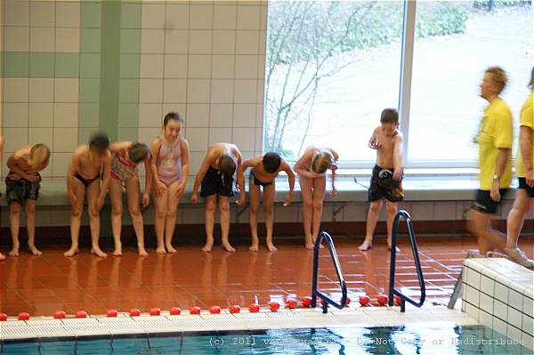 29 januari 2011; Na vele lessen is het eindelijk zo ver, Bas gaat afzwemmen!
