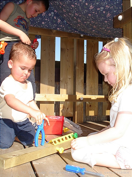 15 april, Oud collega Elvira kwam op bezoek en natuurlijk was Marise ook mee, er werd heerlijk in de hut gespeeld met het nieuwe gereedschap dat Bas van Marise had gekregen.