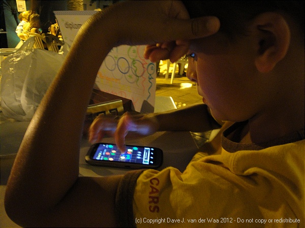 Bas kijkt niet naar het entertainment, hij speelt liever Flow.