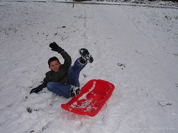Er ligt sneeuw, echte sneeuw en Thom en Bas genieten van het schaarse witgoed.