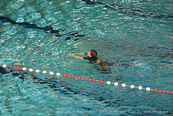 2x 25m op de buik zwemmen en dan 2x 25m op de rug.