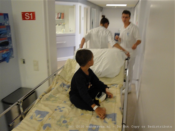 29 juli 2010; Vandaag wordt Bas geholpen aan zijn keel-amandelen.