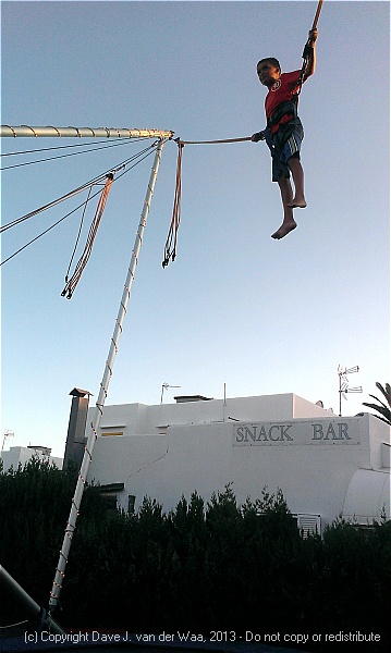 Na het eten even in de elastieken om hoog boven de huizen uit te kijken over Cala d'Or.