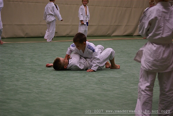 dus direct de tegenstander op de grond duwen en in de houdgreep nemen.