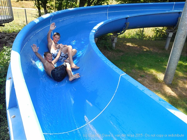Op de camping hadden we een binnenbad. Maar in Saarburg stad een prachtig buitenbad.
